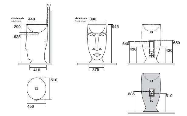 Kerasan Artwork Раковина свободностоящая "MOLOCO", с отверстием для слива в стену, цвет белый матовый