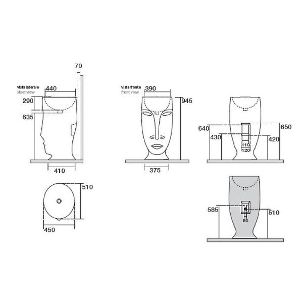 Раковина напольная Kerasan Artwork Moloco, цвет белый/античное золото, 474060Раковина пристенная Kerasan Artwork Moloco, с отверстием для слива в стену: