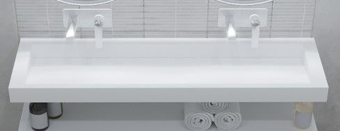 Раковины выполнены из матового Corian, в новаторском дизайне со скрытым сливом.