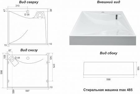 • Возможность установки над стиральной машиной: