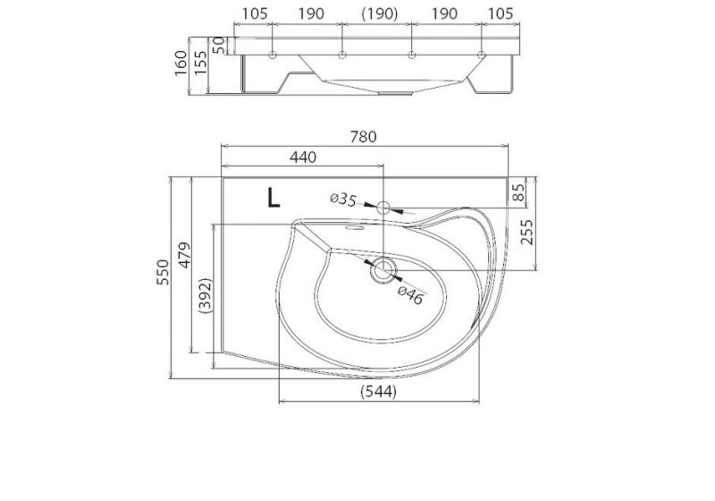 Раковина Ravak Rosa Comfort XJ8L11N0000 левый