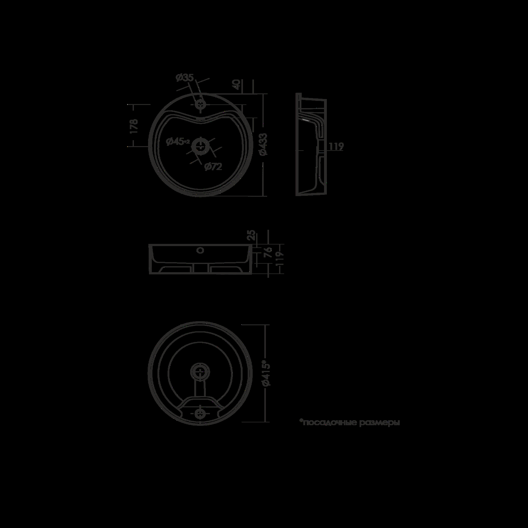 • Отверстия под смеситель: