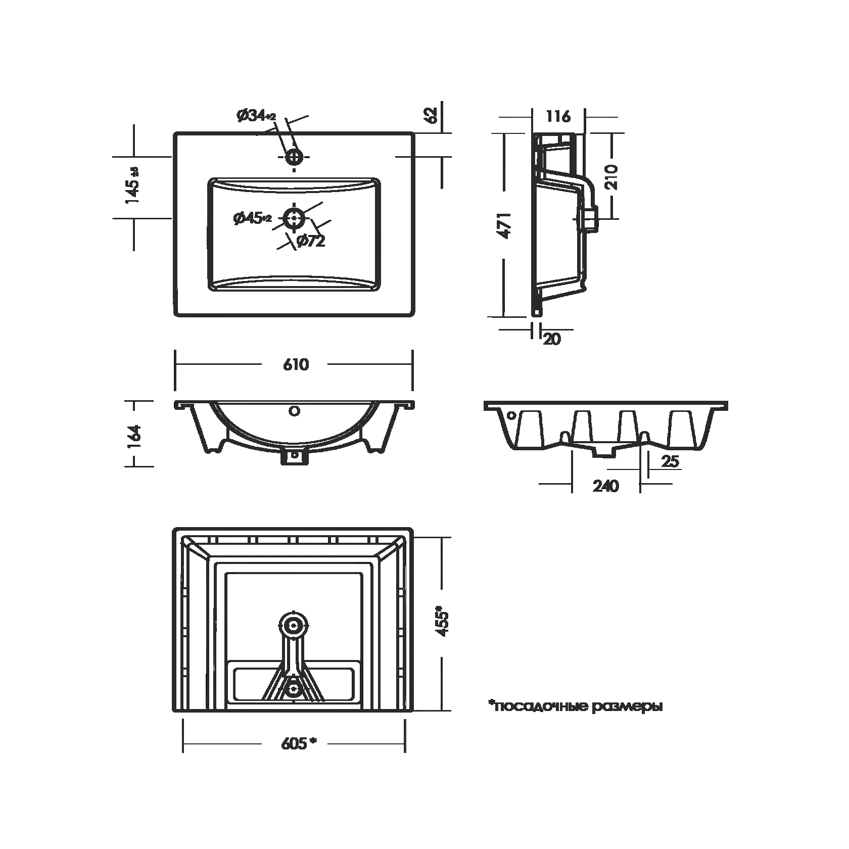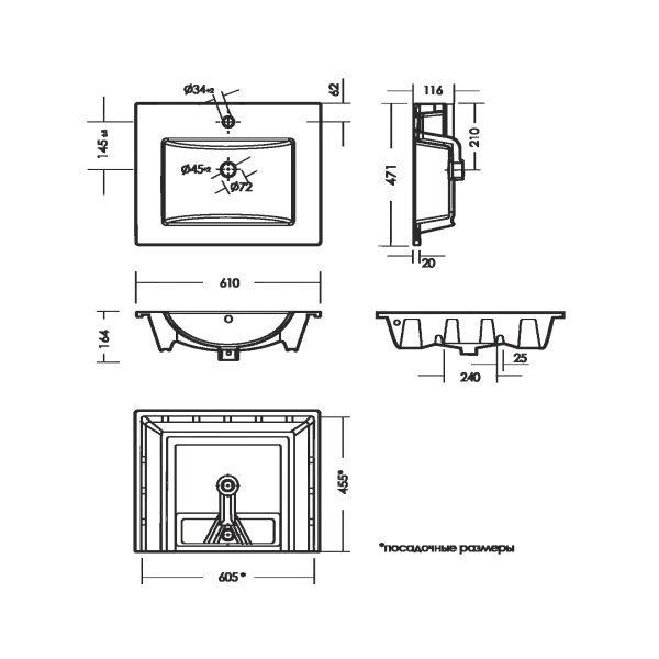 • Отверстия под смеситель: