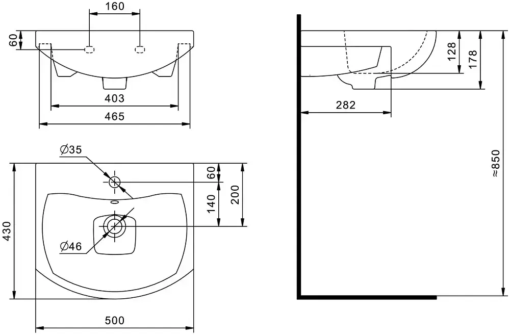 • Отверстие под смеситель и перелив для комфортного использования