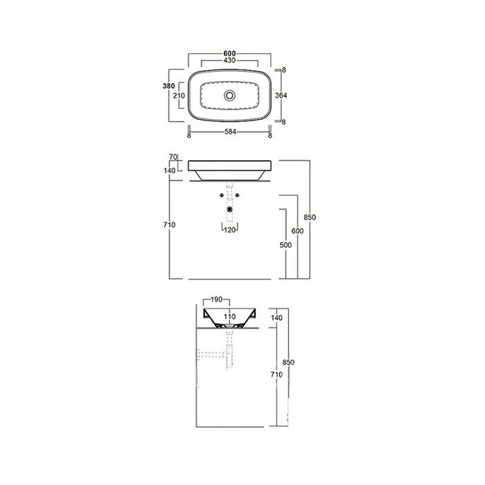 Размеры: 600 х 380 х 70/140 мм