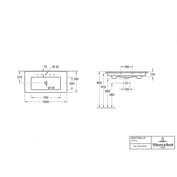 Раковина Villeroy Boch Venticello 50 x 100 см 4104AL01