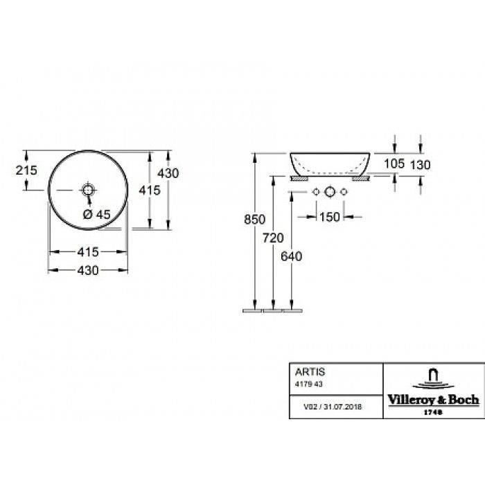 Раковина Villeroy Boch Artis 417943BCW1 43х43 см, Frost серо-голубая купить