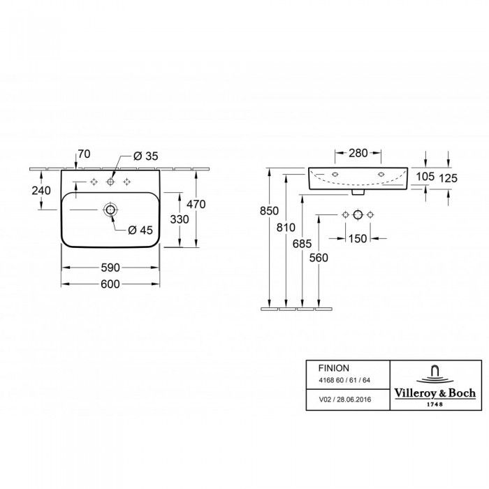 Раковина Villeroy Boch для установки под столешницу, 650 x 400 x 208 mm, Альпийский белый, с переливом, нешлифованный