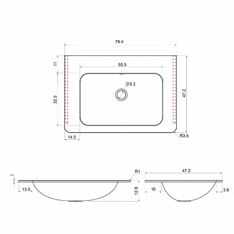 Размеры (ШхВхГ): 794х128х472 мм.