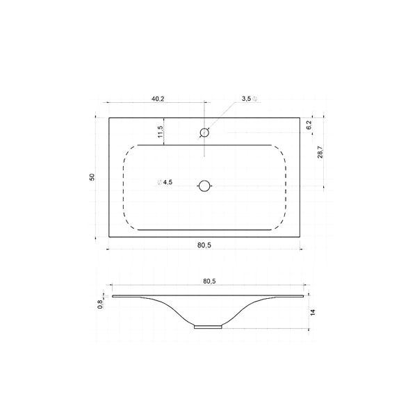805x140x500Отверстия под смеситель: