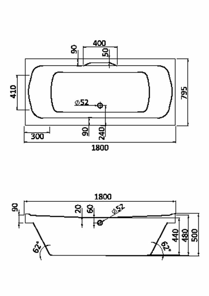 Глубина 48 см, высота 61 см, объем 250 литров. Ванна устанавливается на металлический каркас, что придает ванне дополнительную устойчивость и прочность.