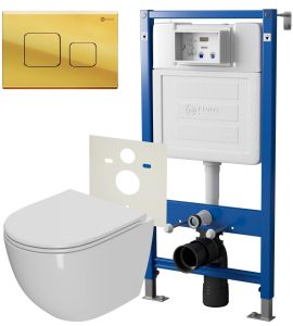 Сет: Система инсталляции Point Элемент для подвесного унитаза PN45120 + Клавиша смыва для инсталляции Point Афина, золото, PN44041G + Унитаз подвесной Point Афина безободковый, сиденье микролифт PN41041