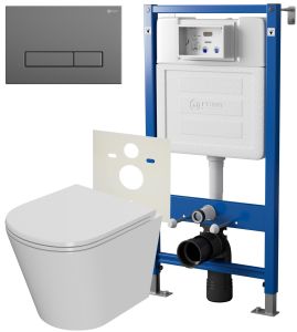 Сет: Система инсталляции Point Элемент для подвесного унитаза PN45120 + Клавиша смыва для инсталляции Point Меркурий, цвет графит, PN44831GM + Унитаз подвесной Point Виктория безободковый, сиденье микролифт PN41061