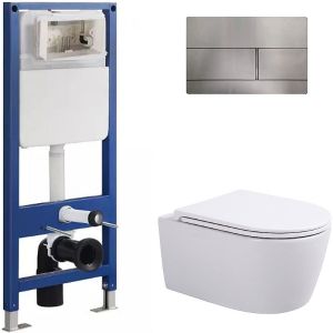 Сет Sintesi SIN-CCI-SMP-101,SIN-FB-DSS-507,SIN-TS-DNT-191: инсталляция кнопка смыва нержавеющая сталь унитаз Dante белый крышка-сиденье белая