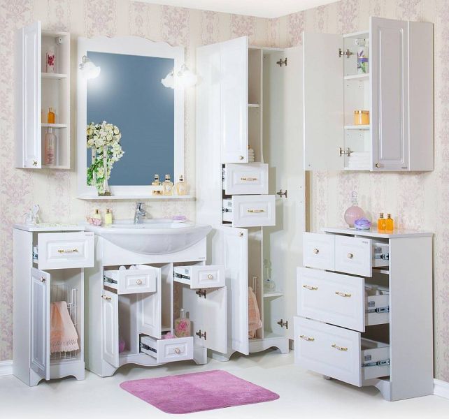 Основное преимущество шкаф заключается в его вместительности. Удобные полки и ящики позволяют организовать пространство и разместить все необходимое: от косметики до бытовых принадлежностей. Каждая деталь продумана для удобства использования, что делает утренние и вечерние ритуалы более приятными.