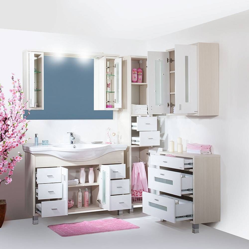 Основное преимущество шкаф заключается в его вместительности. Удобные полки и ящики позволяют организовать пространство и разместить все необходимое: от косметики до бытовых принадлежностей. Каждая деталь продумана для удобства использования, что делает утренние и вечерние ритуалы более приятными.