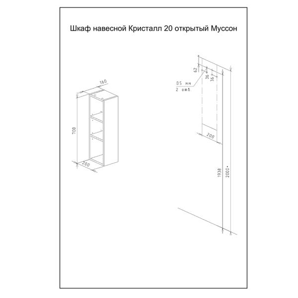 Шкаф навесной открытый Бриклаер Кристалл 4627125416033 20 см дуб бунратти купить