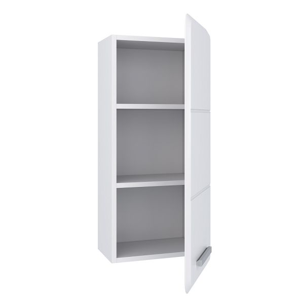 Шкаф навесной с одной распашной дверкой, за которой две внутренние полки. Петли со встроенным доводчиком, ручка - 1шт, навесы 2шт. Выпускается только в правом исполнении.