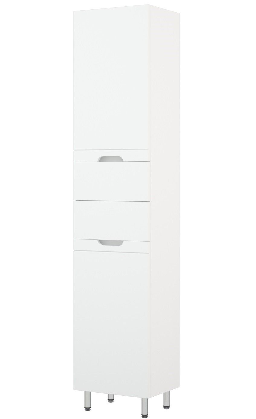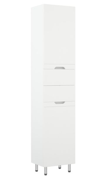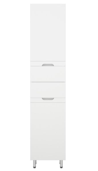 Шкаф-пенал Corozo Лея 40 Z2, 40 см, с бельевой корзиной, цвет белый, SD-00000099Коллекция мебели для ванных комнат "ЛЕЯ" создана для тех, кто ценит простоту форм, сочетание округлых и прямых линий, удобство эксплуатации. У мебели коллекции «ЛЕЯ» корпус выполнен из ЛДСП, фасады - из влагостойкой плиты МДФ, покрытие – пленка ПВХ. Мебель оснащена доводчиками. Модели пенала разделена на две секции (верхняя и нижняя) с распашными дверцами и двумя выдвижными ящиками по центру. Высота каждого ящика по 110 мм. В верхней части расположены две регулируемые по высоте вкладные полки, нижняя секция представляет собой откидную дверь с корзиной для белья. Фурнитура с лицевой стороны фасадов отсутствует, вместо нее предусмотрены интегрированные ручки с декоративной полосой тонкой фрезеровки. Бесшумность и долговечность эксплуатации обеспечивают надёжные системы мягкого закрывания – роликовые направляющие и петли с доводчиками.