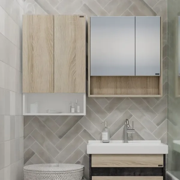 Комплектация: на дверках петли плавного закрывания, полки - 2 шт Влагостойкий шкаф в ванную комн... Подробнее