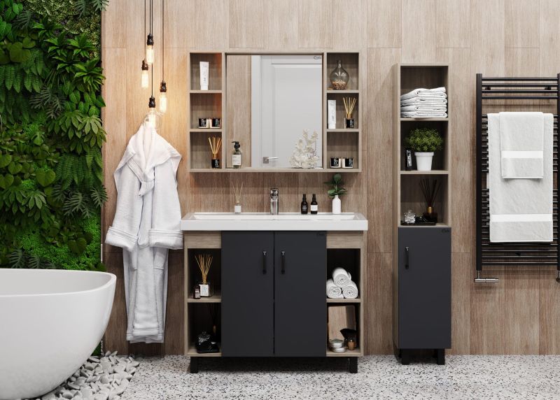Зеркальный шкаф Onika ТИМБЕР 100 отражает современные тенденции в дизайне мебели для ванных комнат: минимализм с простыми и понятными формами, цвета дуба с роскошной текстурой, отсутствие лишних деталей.
