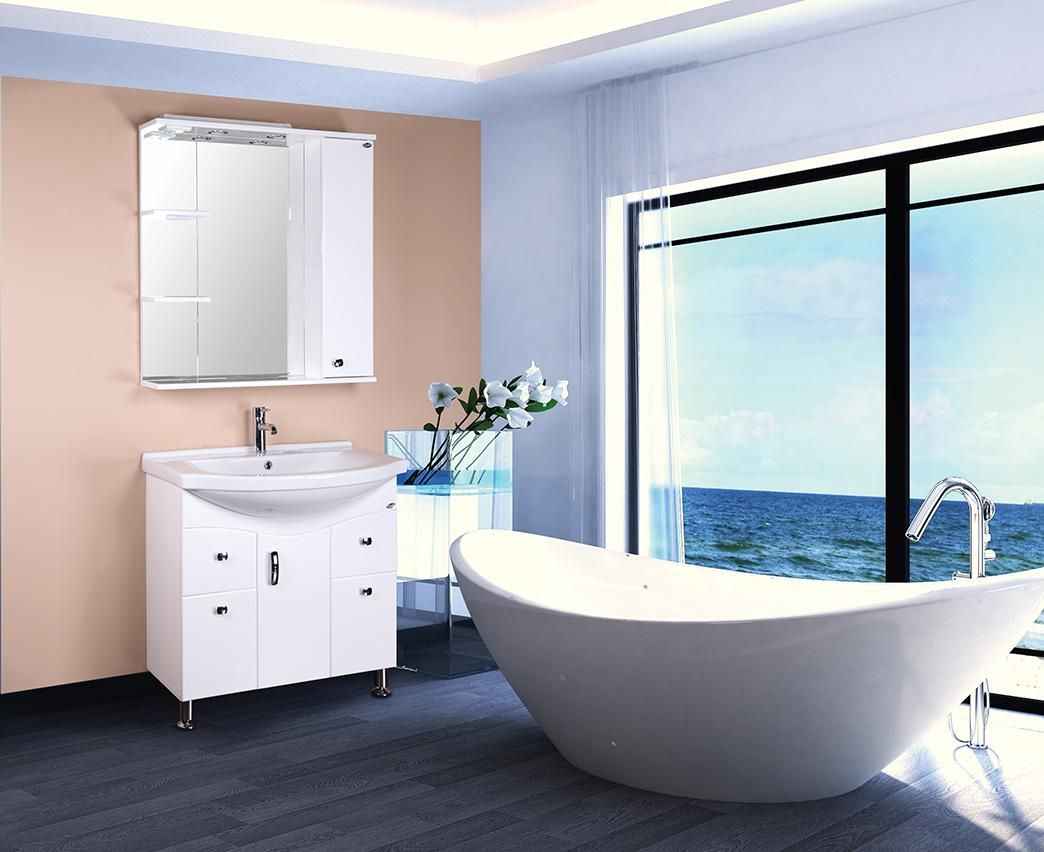 В зеркальном подвесном шкафе Onika ЭЛЬБРУС 80 белоснежный глянец фасада подчеркивается оригинальной хромированной фурнитурой и простой изысканной геометрией линий.