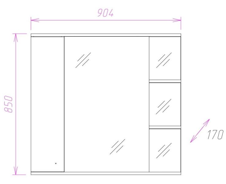 В зеркальном подвесном шкафе Onika ЭЛЬБРУС 90 белоснежный глянец фасада подчеркивается оригинальной хромированной фурнитурой и простой изысканной геометрией линий.