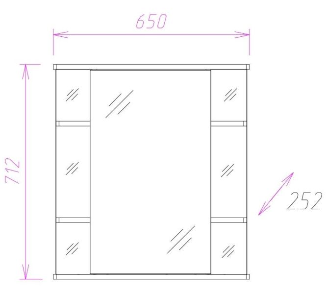 Корпус шкафа-зеркала выполнен из ЛДСП, фасад - из ЛДСП и ЛМДФ в пленке, устойчивых к механическим воздействиям, перепадам температур и высокой влажности.