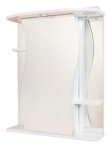 Навесной зеркальный шкаф ЛИЛИЯ 55 способен преобразить ванную комнату: эстетика изогнутой линии воплощается в мягкой волнообразной форме дверцы и исполняет роль основного выразительного элемента для интерьера помещения.