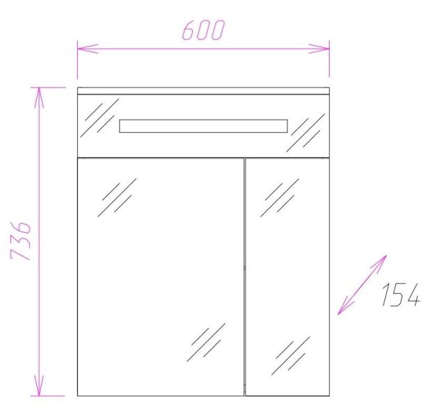 Внешне это отражается в лаконичной прямоугольной форме без ручек и лишнего декора и стильной подсветке, в функционально - в двух дверцах разного размера с механизмом плавного закрывания, скрывающих просторное пространство для хранения необходимых вещей, разделенное на 2 части стеклянной полочкой с еврокромкой.