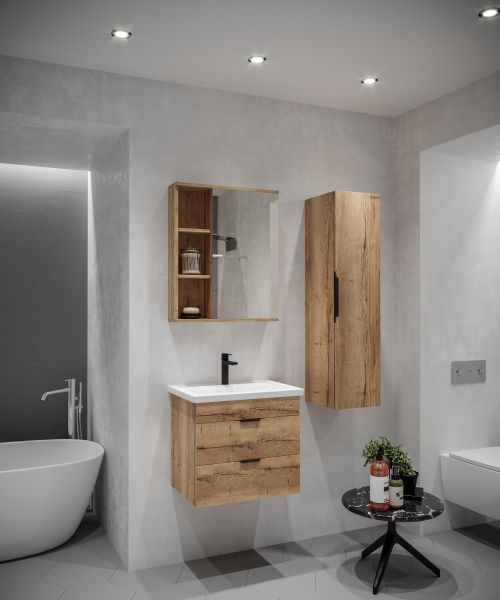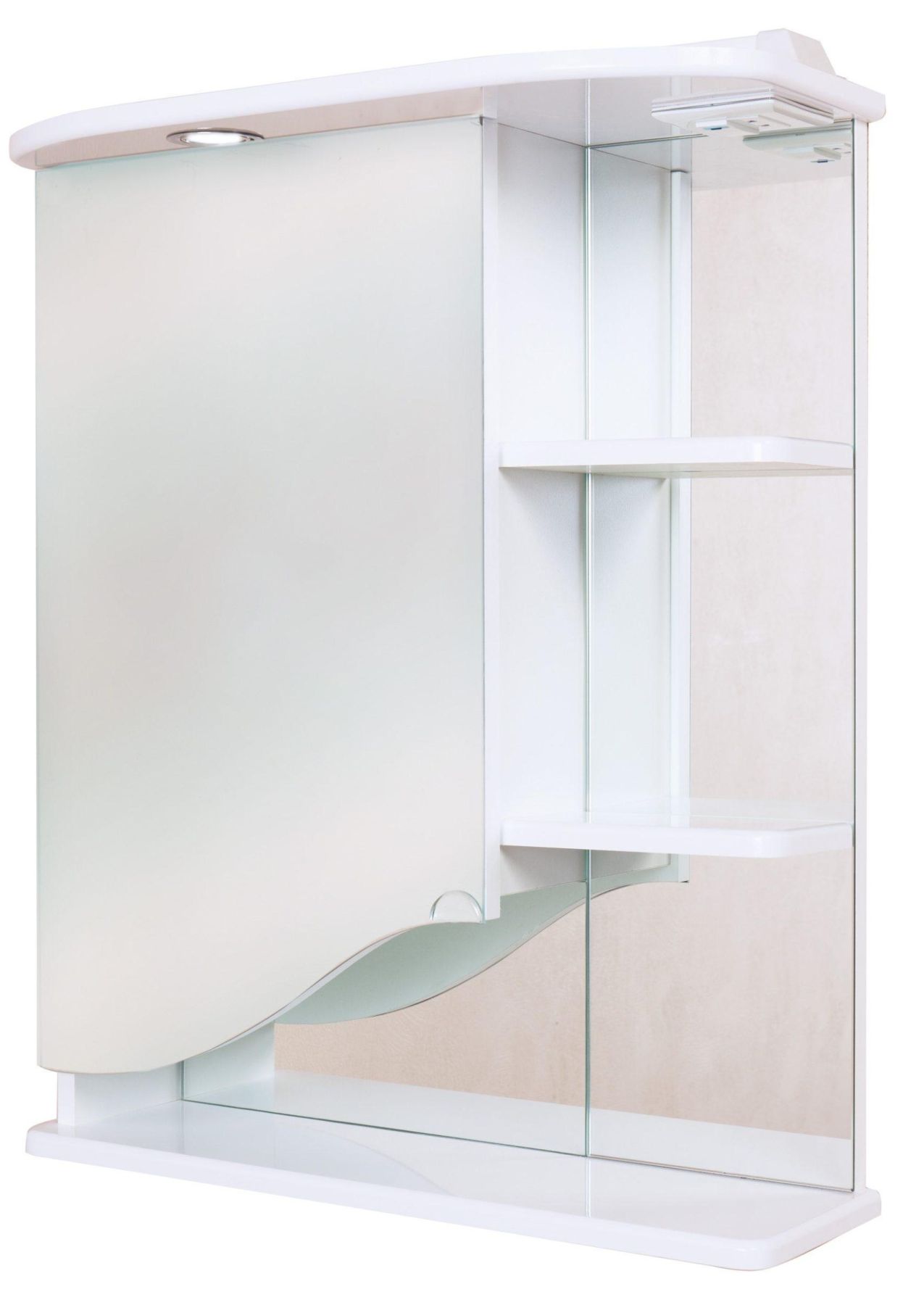 Навесной зеркальный шкаф Onika ВИОЛА 60 в левом исполнении подойдет к любому стилю ванной комнаты и будет прекрасно гармонировать с любой мебелью в том же глянцевом белом цвете.