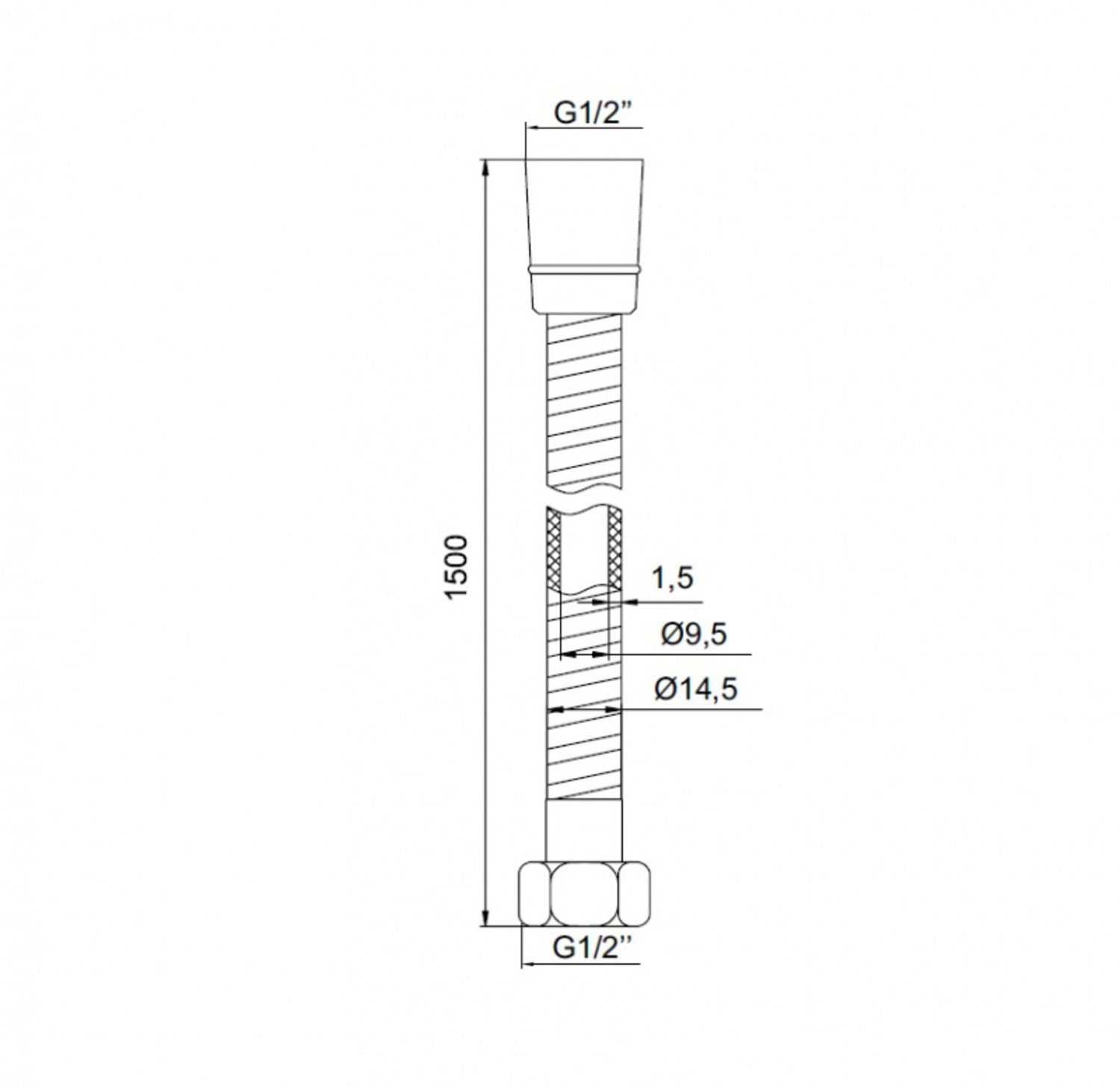 Шланг ПВХ армированный, длина: 1.5 м. Резиновое кольцо на конической гайке для фиксации в держателе.