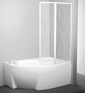 Шторка для ванны двухэлементная поворотная, с закруглением Ravak VSK2 Rosa 150 правая, белый профиль, прозрачный полистирол 76P8010041 купить