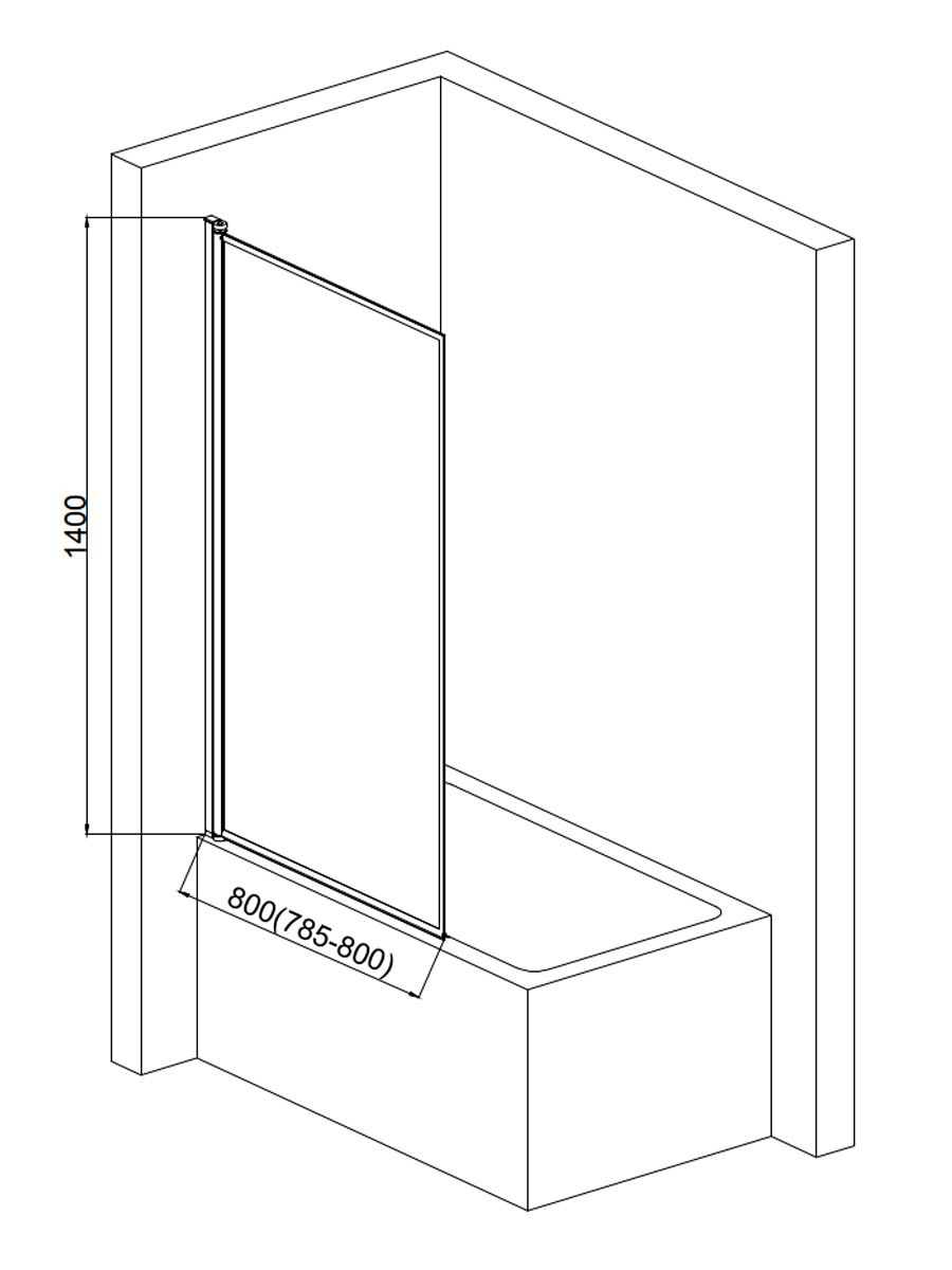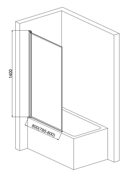 Шторка на ванну AQUAme AQM2859-L левая 80см чёрный матовый