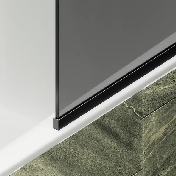 Монтаж осуществляется с помощью алюминиевого профиля, что обеспечивает надежность крепления и безопасность использования стеклянной перегородки для ванной. Также, шторка оснащена специальным уплотнителем, который предотвращает попадание воды на пол ванной комнаты. Закаленное стекло, цвет Графит, толщина 6 мм 1400х340 мм - 1 шт.