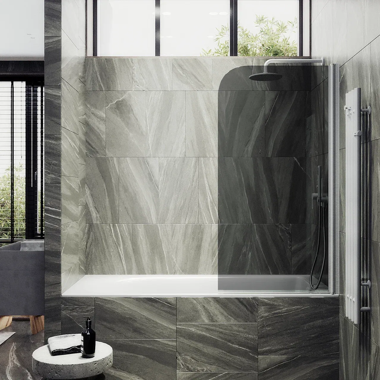 Ширма для ванны легко устанавливается и удобна в использовании благодаря алюминиевому профилю и поворотному механизму. Вы можете выбрать наиболее подходящий под ваш дизайн вариант сочетания цветов шторки и профиля.