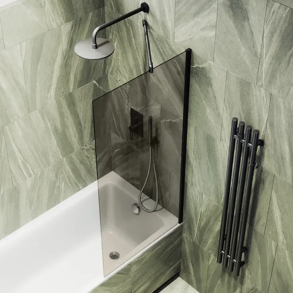Монтаж осуществляется с помощью алюминиевого профиля, что обеспечивает надежность крепления и безопасность использования стеклянной перегородки для ванной. Также, шторка оснащена специальным уплотнителем, который предотвращает попадание воды на пол ванной комнаты. Закаленное стекло, цвет Бронза, толщина 8 мм 1400х700 мм - 1 шт.