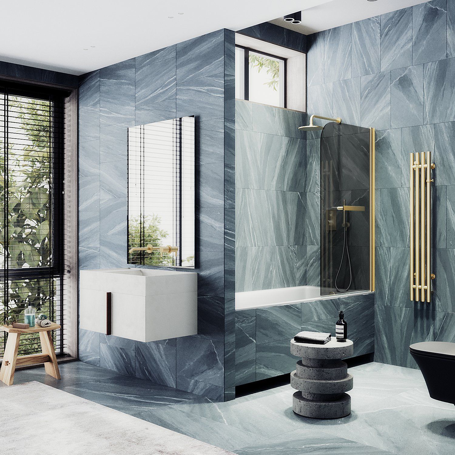 Шторка на ванну MaybahGlass MGV-791-3 80см золото купить