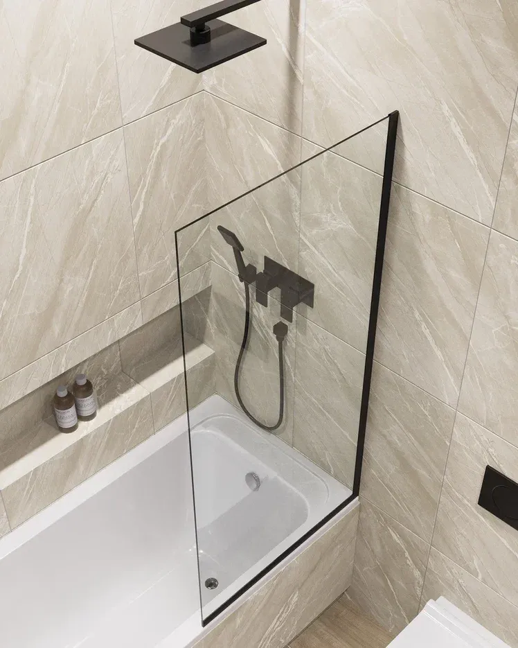 Шторка на ванну в профиле by Deonria C-140-90-8-T-B 90см чёрный/прозрачный купить