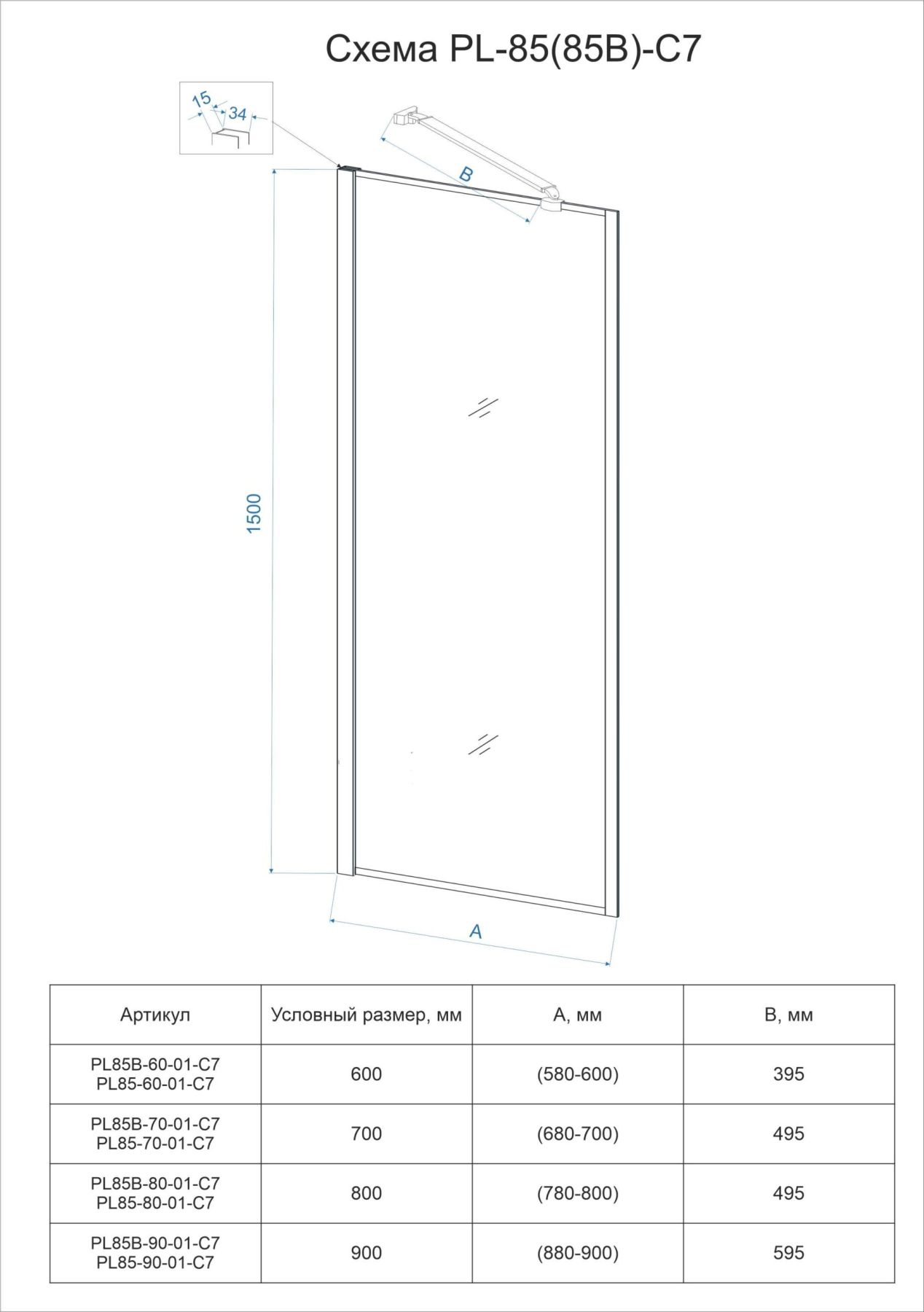 Шторка на ванну Veconi Palau PL-85, 800x1500, хром, стекло прозрачное