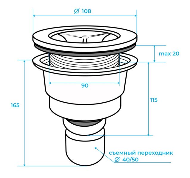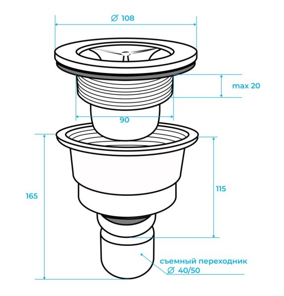 Сифон для поддонов из искусственного камня RGW ST с вертикальным сливом. Подробнее