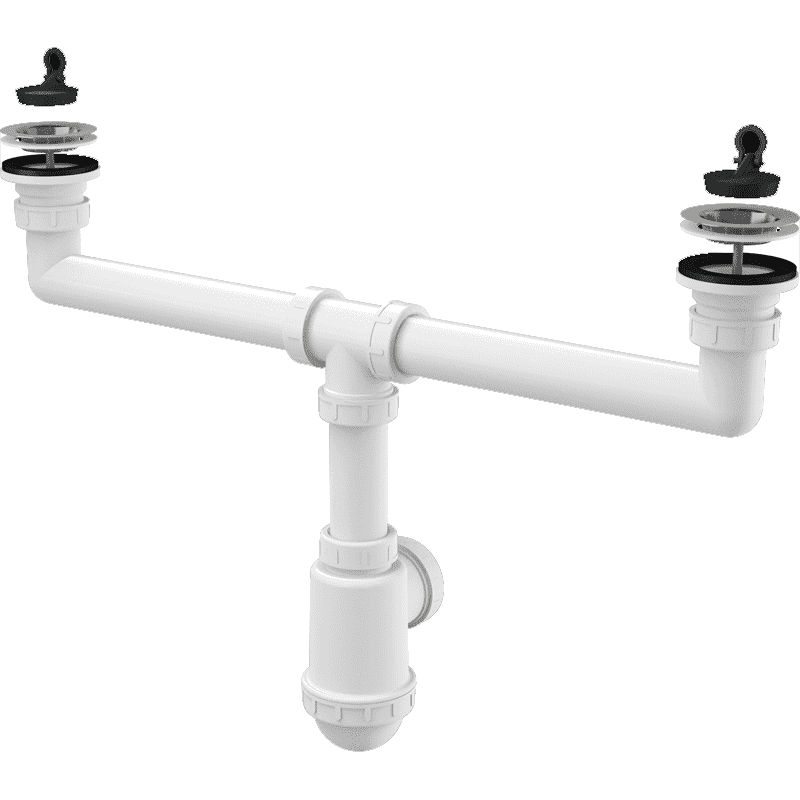 Сифон для двойной мойки AlcaPlast с нержавеющими решетками ?70 без штуцера A449-DN50/40 купить