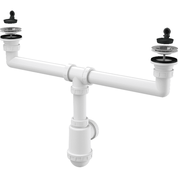 Сифон для двойной мойки AlcaPlast с нержавеющими решетками ?70 без штуцера A449-DN50/40