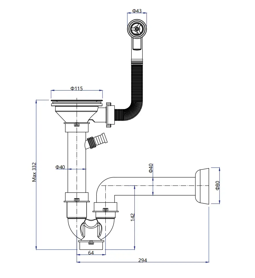 "Сливная арматура для одночашевой мойки.