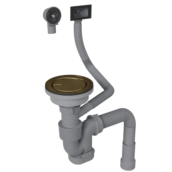 Сифон для одночашевой кухонной мойки с выпуском Reflexion Arno RX3001GD брашированное золото