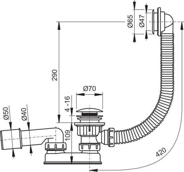Слив воды из поддона осуществляется с помощью, так называемой, «ClickClack» системы (нажатием на крышку сифона слив воды остановится, а повторным нажатием слив воды продолжится). Сифон для поддонов Sabina подходит для глубоких поддонов с сиденьем Sabina. К сифону можно докупить редуктор, который выполняет функцию перехода с одного диаметра (сифон RAVAK диаметром 40 мм) на другой (канализационная труба диаметром 50 мм).