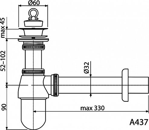 Сифон для раковины AlcaPlast 1 1/4"х32 цельнометаллический с водосливом 5/4" A437