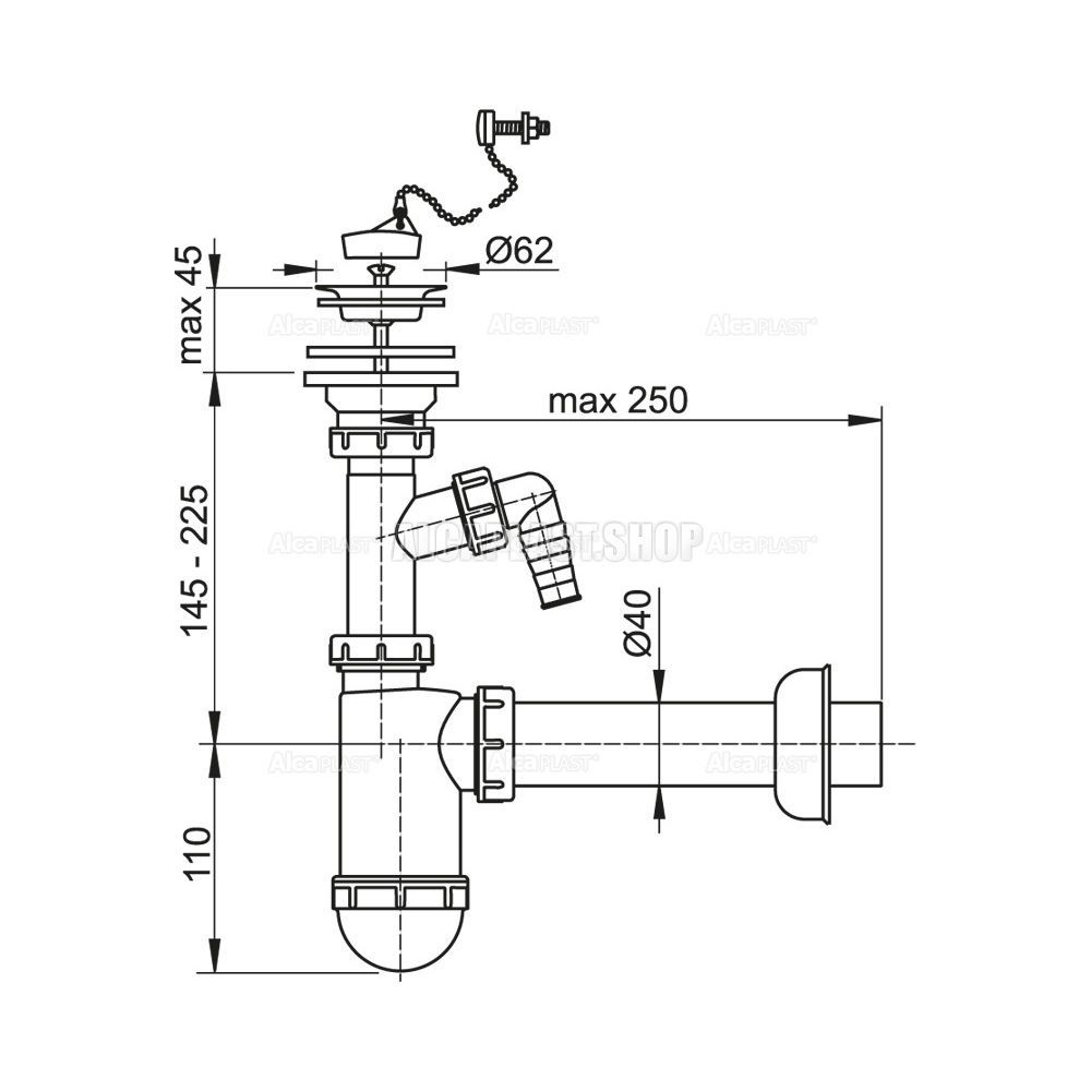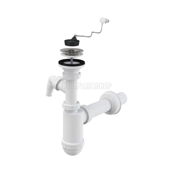 Сифон для раковины AlcaPlast ?40 с нержавеющей решеткой ?63 с цепочкой и подводкой A41PR