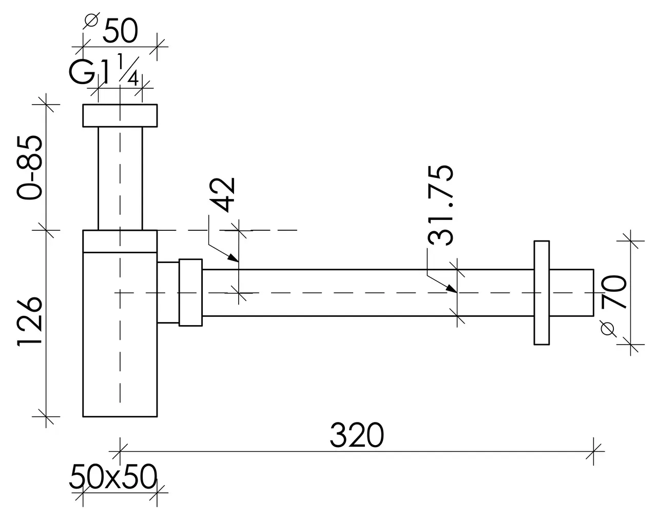 Дизайнерский бутылочный сифон для раковины с мокрым затвором (гидрозатвором), донная часть снимается для очистки, с возможностью регулировки по высоте при монтаже