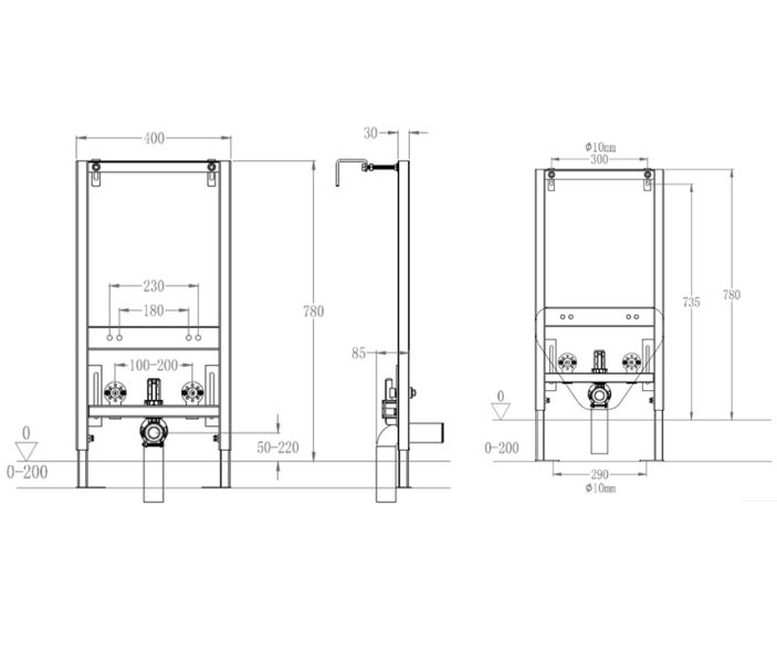 • Жесткая несущая рама из горячеоцинкованной стали 2.0 мм, монтажная пластина унитаза - 3.0 мм коррозионная стойкость по стандартам ASTM B117